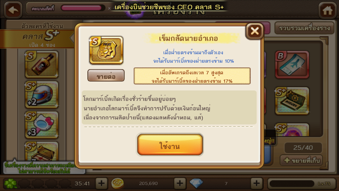 ตรานายอำเภอS+อัพเต็มดูดกลับ19% ส่วนออฟรองดูดกลับ14% ถ้าจะสุ่มหาจี้ตรานายอำเภอ ก็ต้องเสียเพชรจำนวนหนึ่ง รวมถึงเงินกับจี้S,S+ ที่เอามาตีบวกจนเวลmax มันจะคุ้มไหมครับกับความต่าง 5% นี้ แถมช่องเครื่องราง