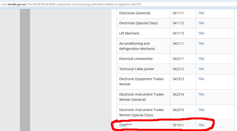 [ออสเตรเลีย] อาชีพเชฟกลับมาอยู่ใน Skilled occupations lists นานรึยังครับ