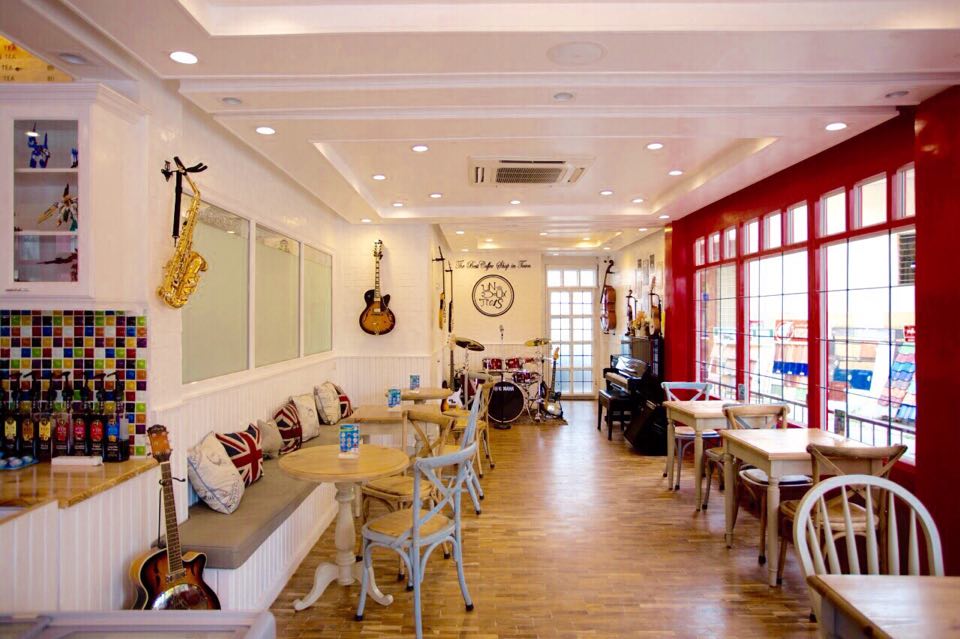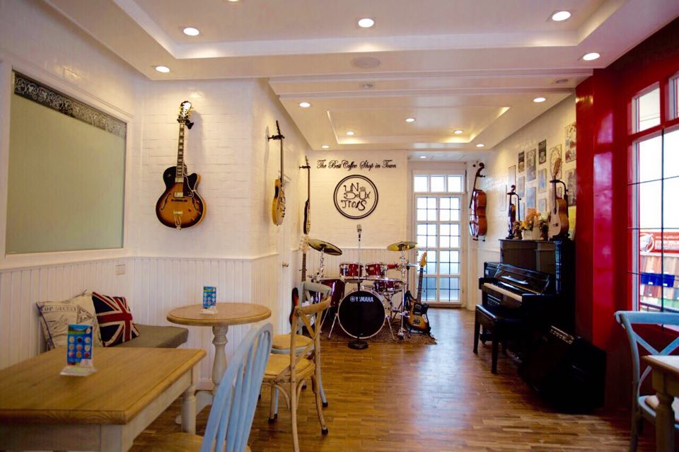 ภายในร้านตกแต่งสไตด์อังกฤษ และเครื่องดนตรี สามารถหยิบมาเล่นได้ตามใจชอบ 5555