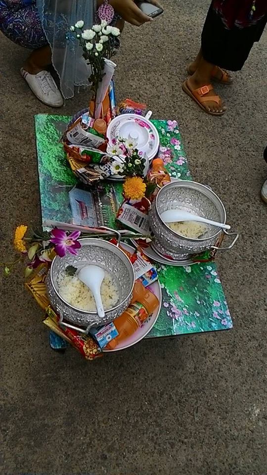 พอพระมาก็ใส่บาตรกันเรียบร้อยค่ะ ท้องเริ่มหิว อย่างว่ากองทัพต้องเดินด้วยท้อง พวกเราเลยหาอะไรทานก่อนจะเข้าที่พักค่ะ