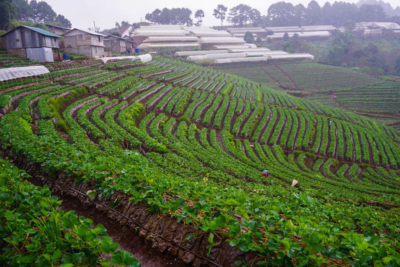ไปต่อกันที่ แปลงสตรอเบอรี่ น้องฝนตกมาแรงเลยครับที่นี้ อดลงแปลงเลย