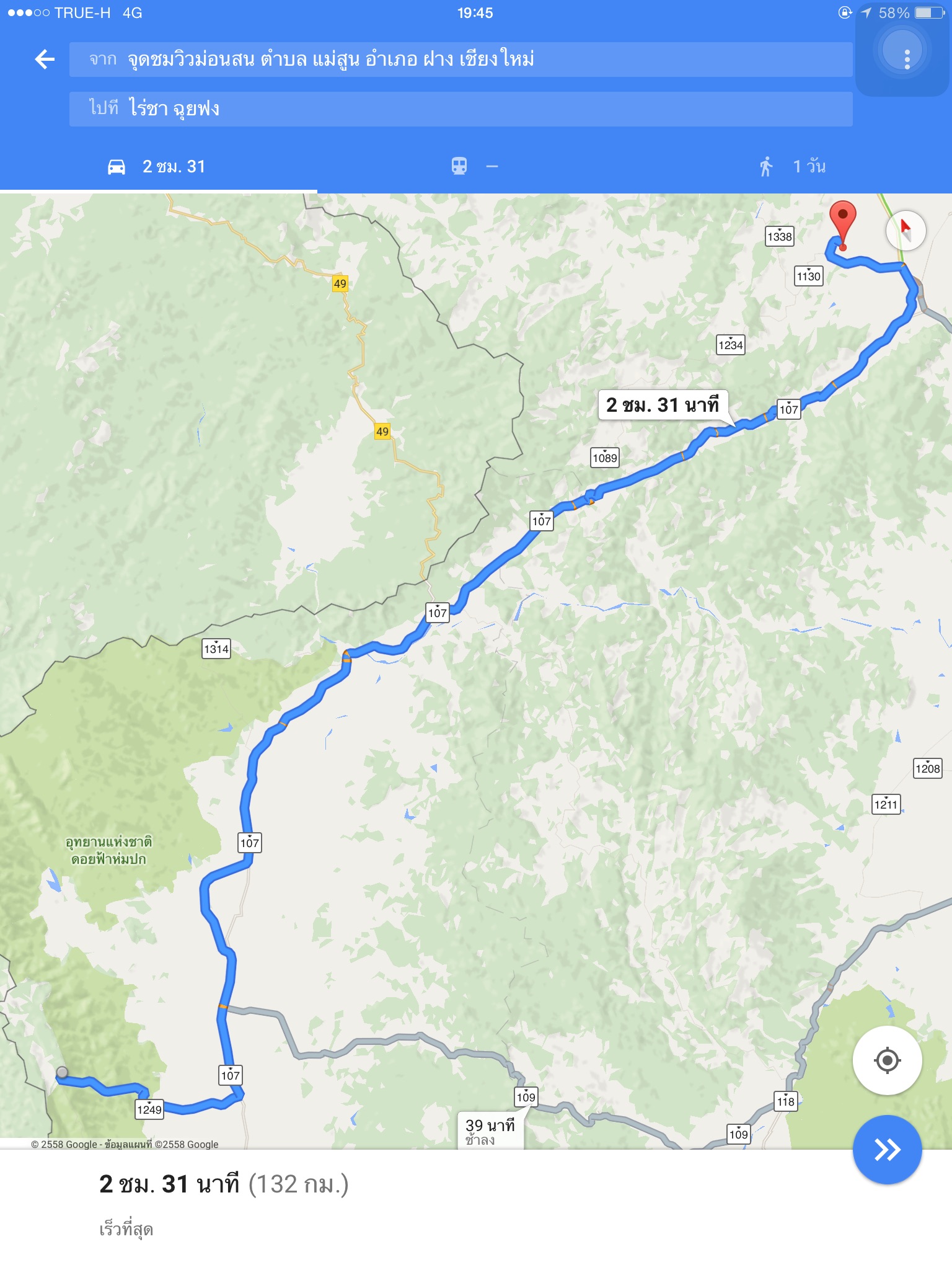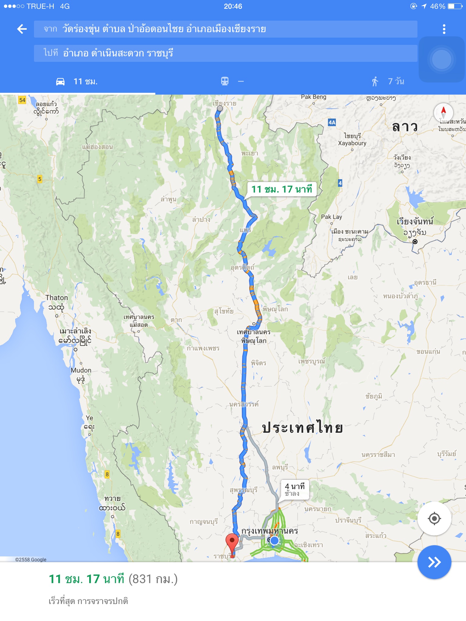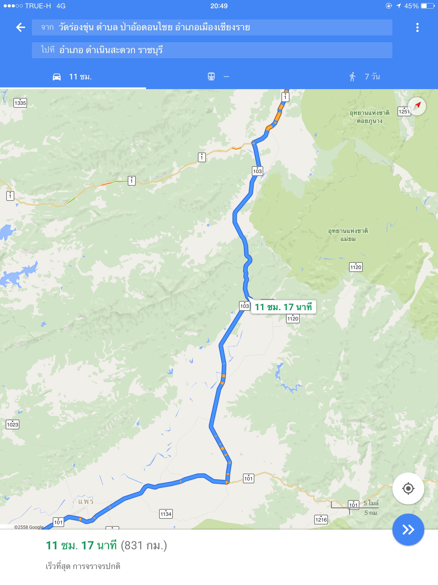 ผมเลือกใช้เส้นทางนี้ครับ จะมีปั้มน้ำมัน PT อยู่ระหว่างทางพอดีครับ