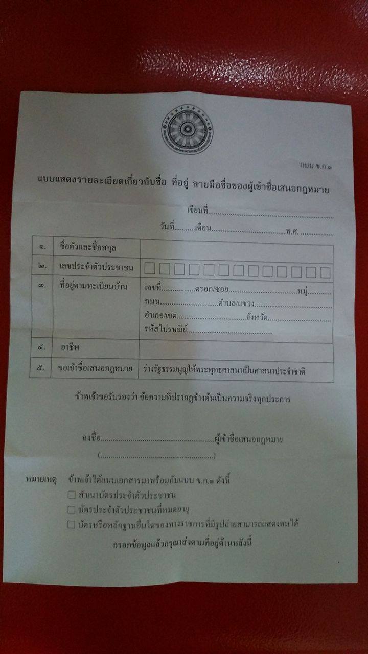 ใครเคยได้รับจดหมายขอเข้าชื่อเสนอกฎหมายร่างรัฐธรรมนูญให้พระพุทธศาสนาเป็นศาสนาประจำชาติบ้างคะ