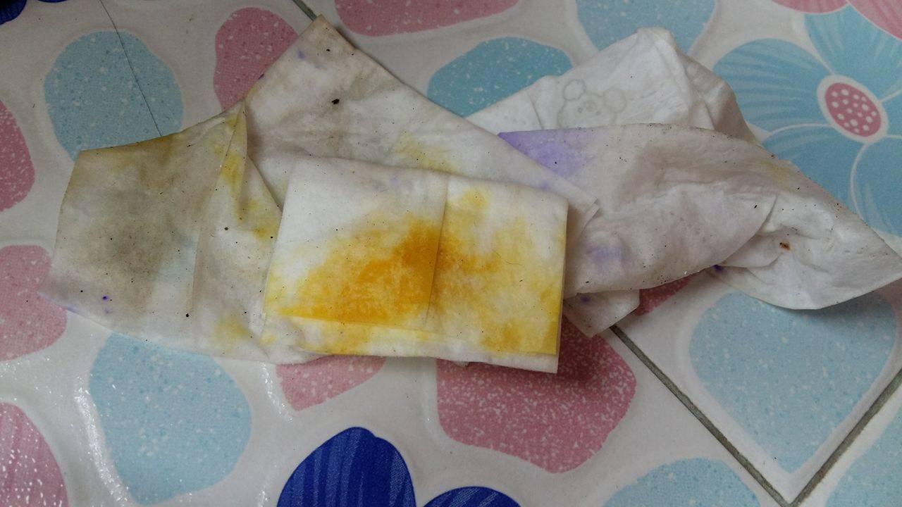 นี่อึน้องค่ะ น้องอึแตกตอนป้อนยา ออกมาเป็นน้ำสีเหลืองเลย