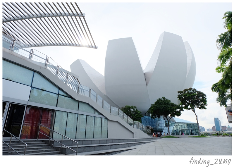 พุ่งทยานไปเป้าหมายต่อไปที่รู้มาว่าอยู่ใกล้ๆกัน คือ สะพาน Helix เลยเดินไปตาม google map สรุปแล้ว ไม่ใกล้เท่าไรหรอก แต่ก็เดินไหวไม่ไกลมาก แม่กับป๊าเราก้ไหว!! ไหวมั้ง ใกล้ถึงจะเห็นสะพานสวยมาแต่ไกล พร้อมตึกรูปดอกบัว เป็น Art Science Museum ซึ่งเค้าบอกว่าตึกนี้ออกแบบมาให้รองรับน้ำฝนไหลลงมาที่รูตรงกลาง แล้วนำไปรีไซเคิลเป็นน้ำสำหรับใช้ในห้องน้ำด้วย หันไปข้างๆเจอห้าง The Shoppes หาขนมกินซะหน่อย แยกย้ายกันไปซื้อแม่ได้ลอดช่องมา ลอดช่องสิงคโปร์สินะ เอิ่มม -.-” เรากับป๊าได้ Kaya toast พร้อมชานม Teh มา อร่อยดี นั่งกินนั่งพักกันให้หายเหนื่อย