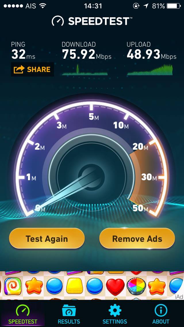 พอดีเมื่อวันก่อนได้รับ sms จาก AIS เพื่อทดลองใช้ 4G และวันนี้ก็เลยได้มีเวลาทดลองเล่นและทดสอบความเร็วกัน