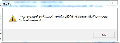 The printer driver and/or utilities cannot be installed your Windows system. ทำยังไงคะก่อนลงวินโดว์ก็ติดตั้งได้อยู่ ไปลงวินโดว์ใหม่ติดตั้งไม่ได้นะคะ