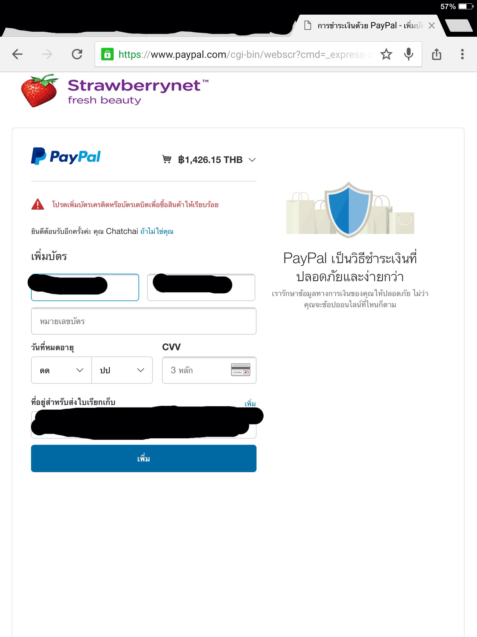 รบกวนแนะนำที่ครับ "เกิดข้อผิดพลาด เมื่อจ่ายเงินซื้อสินค้าผ่าน Paypal"