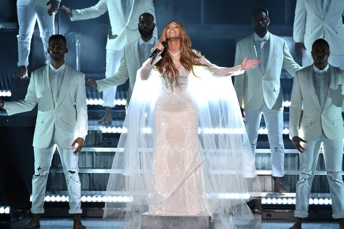 การแสดงของ Beyoncé ที่โชว์บนเวทีของงาน 57th Annual GRAMMY Awards ที่ STAPLES Center เมื่อวันที่ February 8, 2015. Los Angeles, California.