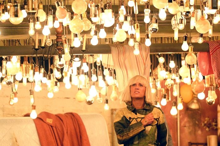 Actress Kristen Wiig lip-syncs Sia's "Chandelier" onstage during The 57th Annual GRAMMY Awards at the at the STAPLES Center on February 8, 2015 in Los Angeles, California.