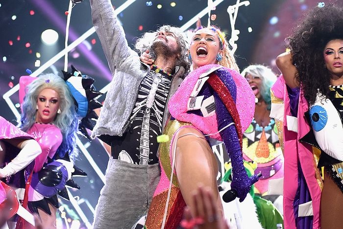 Wayne Coyne of The Flaming Lips and Miley Cyrus perform onstage during the 2015 MTV Video Music Awards at Microsoft Theater on August 30, 2015 in Los Angeles, California.
