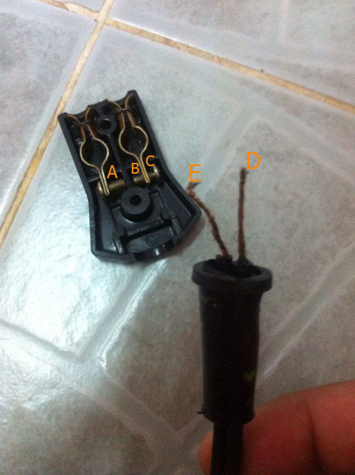 แยกเข้าสองฝั่งเลยครับ จะ A=E , B=D ก้อได้หรือจะเป็น A=D , B=E ก้อได้ครับ ขออย่างเดียวอย่าให้สายทั้งสองฝั่งโดนกันเป็นใช้ได้ครับ