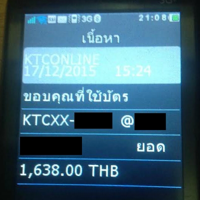 ไม่นาน หลังจากผมวางสายจากเบอร์ BBBB .. ผมได้รับ SMS แจ้งจาก KTC