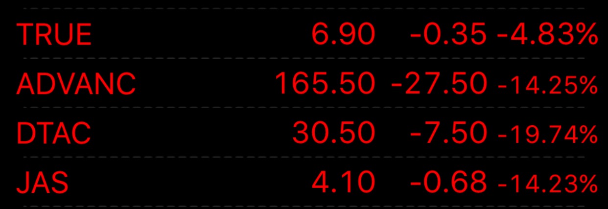 TRUE ADVANC DTAC JAS ราคาหุ้นหลังประมูลลงยกแผง