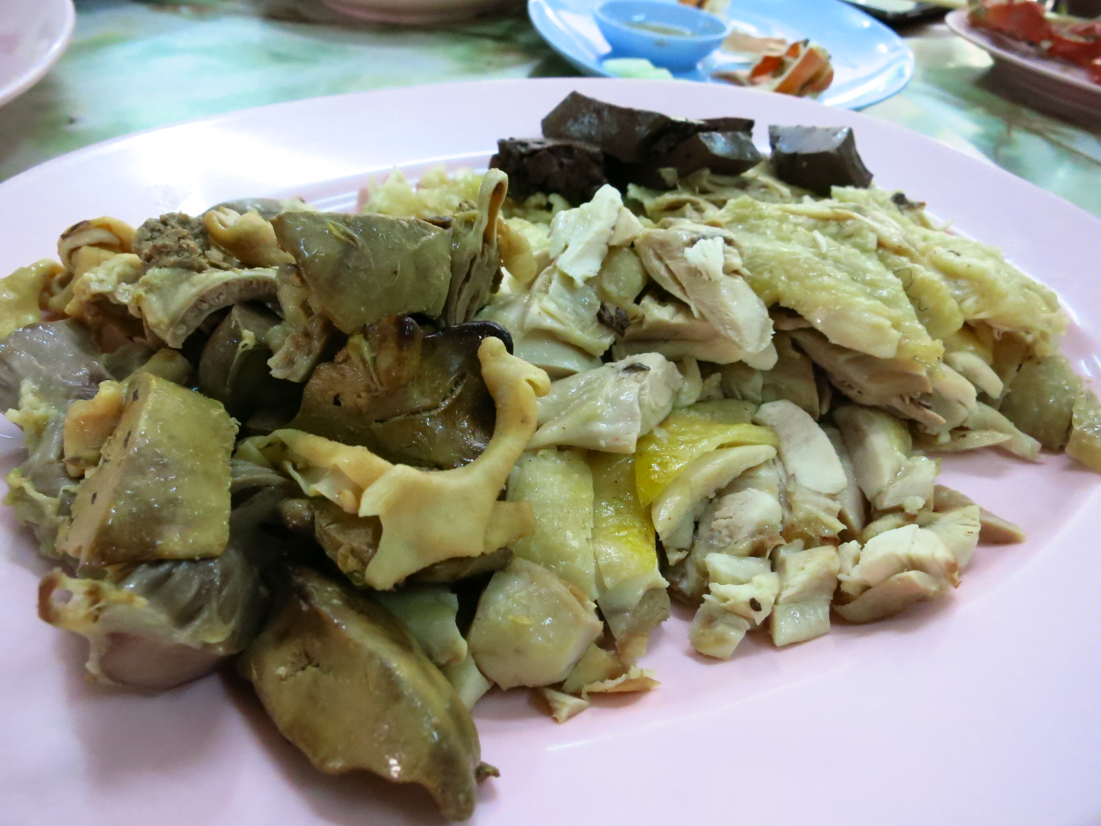 ผ่านฟ้าภัตตาคาร เป็นอีกร้านอาหารเก่าแก่อายุน่าจะประมาณ70กว่าปีขึ้นไป เป็นอีกร้านที่พ่อแม่พาไปทานกับครอบครัวตั้งแต่เด็กๆเลย อาหารจีนไหหลำเมนูเดิมๆตั้งแต่เปิดร้านใหม่ๆไม่ได้เปลี่ยนแปลงไปมากนัก ตัวร้านก็ยังใช้โต๊ะเก้าอี้แบบเก่าที่มีกลิ่นอายของอดีตอบู่เต็มไปหมด เดินเข้าไปในร้านจะเห็นก้ามปูแขวนอยู่คู่กับไก่ต้มซึ่งคงเป็นร้านเดียวในเมืองไทยที่มีก้ามปูมากขนาดนี้แขวนอยู่ ราคาก็แล้วแต่ขนาด300-500บาทแต่ส่วนมากที่บ้านจะโทรไปจองก่อนทุกครั้งเพราะบางครั้งไปมีคนจองไว้หมดแล้ว อาหารต่างๆรสชาติไม่ได้ปรุงแต่งมากมายออกแนวจีนๆรสไม่จัดจ้านนัก ไก่ตอนเป็นอีกจานที่ไก่เนื้อเหนียวนุ่มชุ่มฉ่ำทานกับข้าวมันที่ไม่ได้มันมากเหมือนข้าวมันไก่ทั่วไปก็เข้ากันดี
