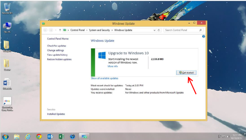 จนวันนี้ ผมได้มีโอกาสเช็คเครื่องครับ ก็ปรากฏว่าเครื่องพี่ผม เขามีไอคอน Get Windows 10 ขึ้นมาแล้ว