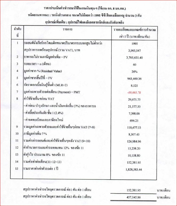 เข้าไปดูรายละเอียดแล้วก็ไม่ได้มีอุปกรณ์อะไรพิเศษ เช่า 5 ปี ค่าเช่าต่อคันปีละล้านกว่าบาท