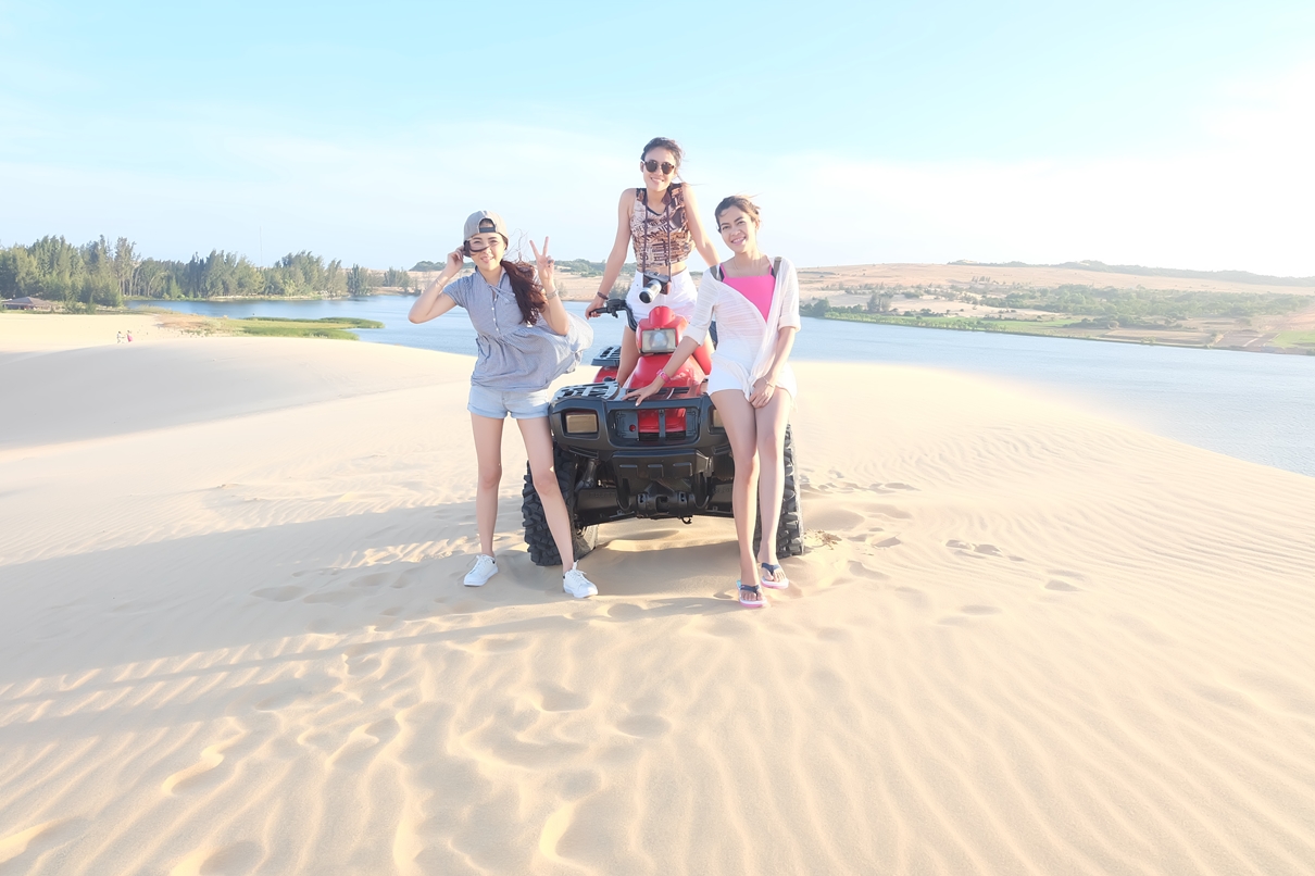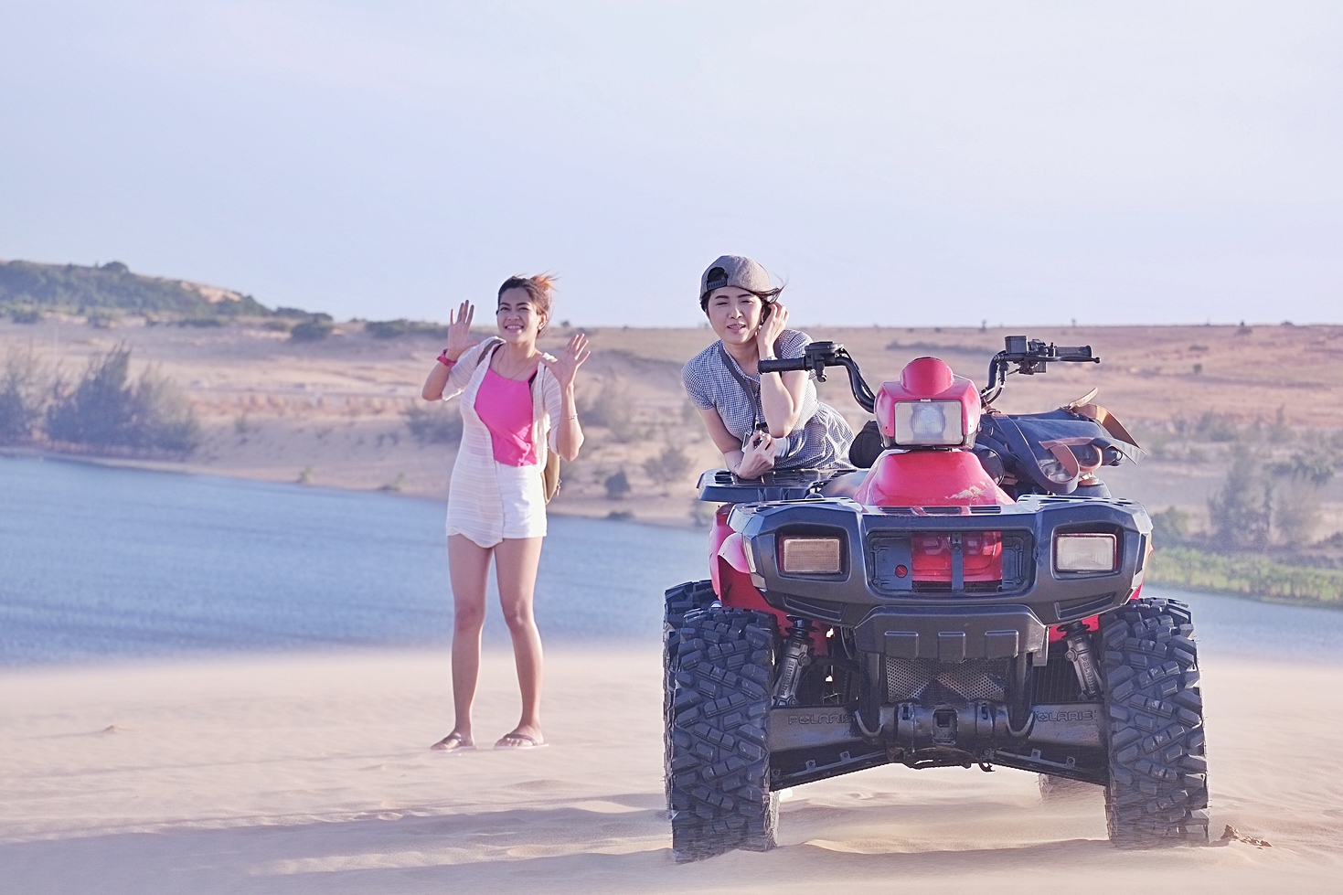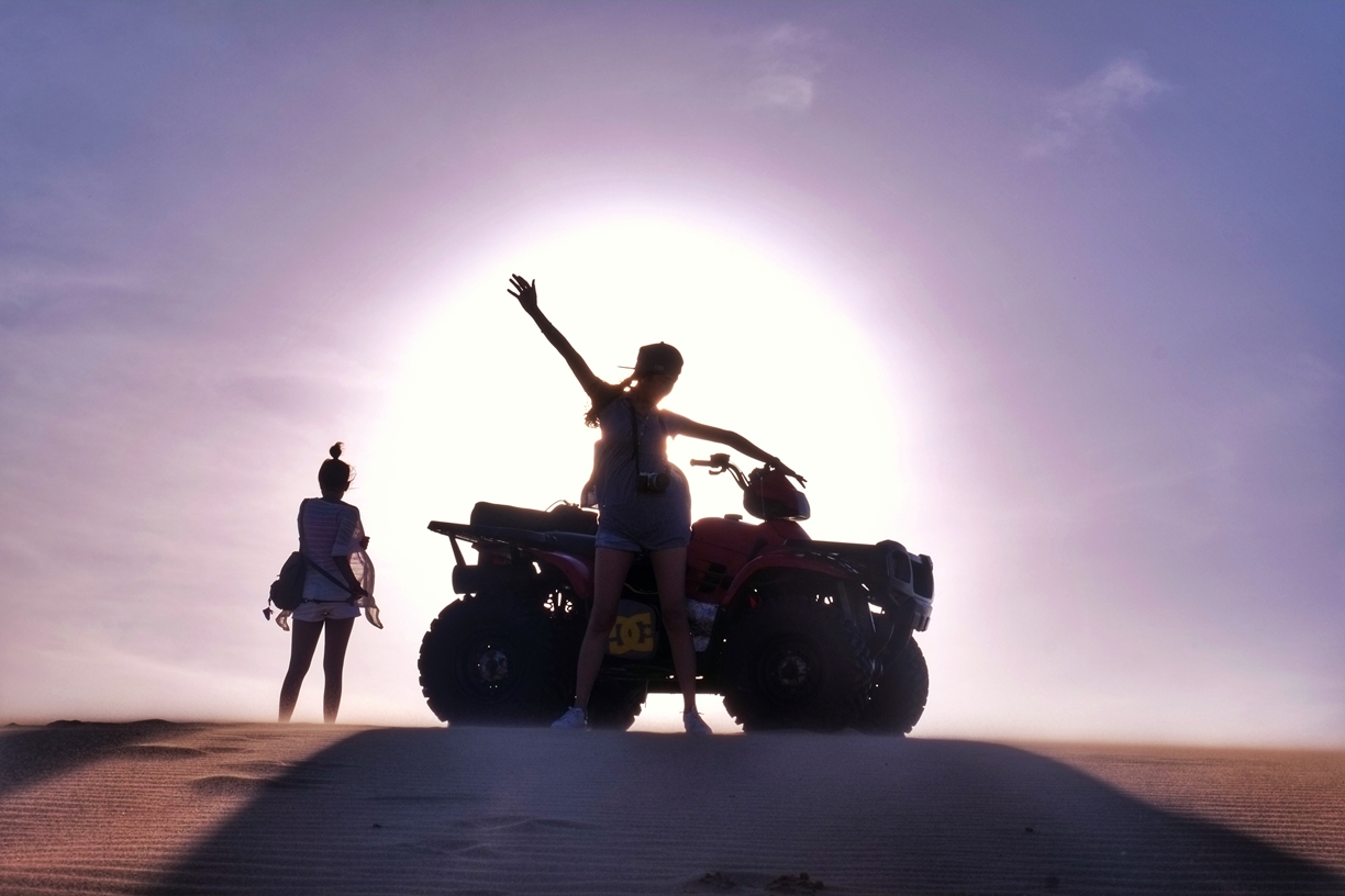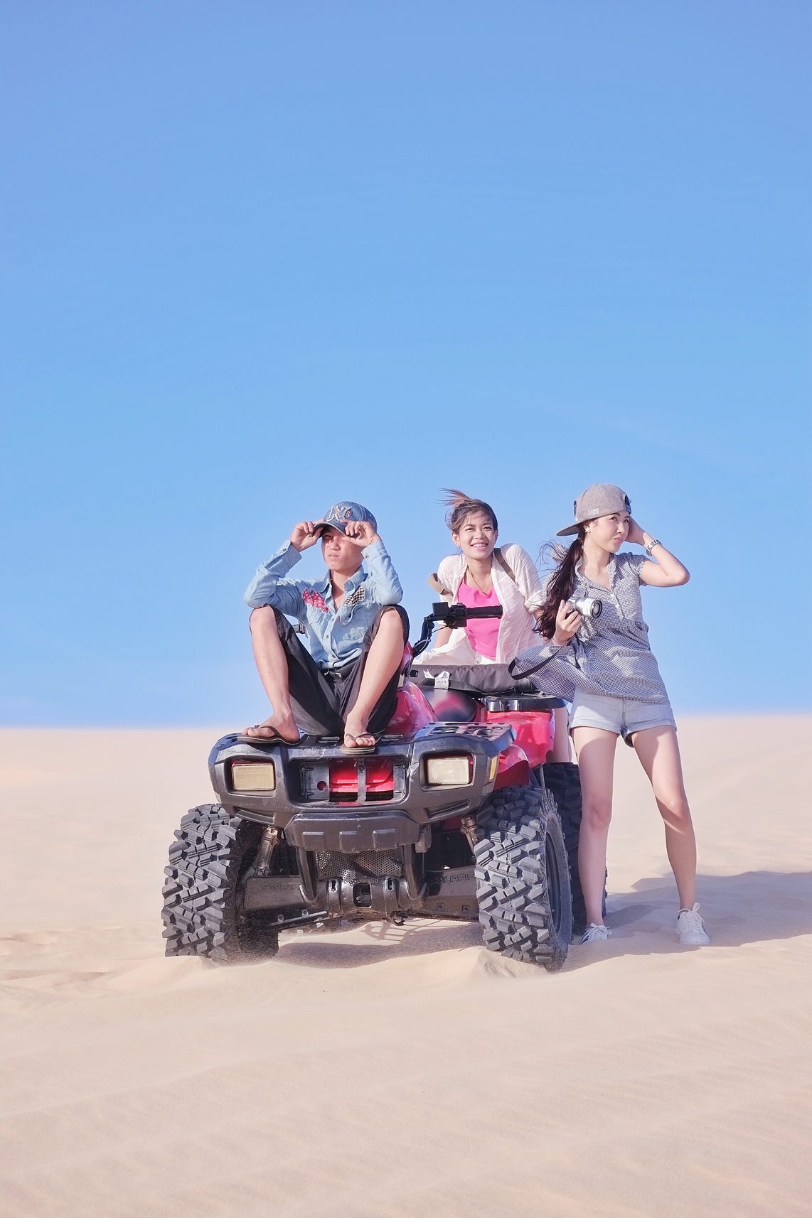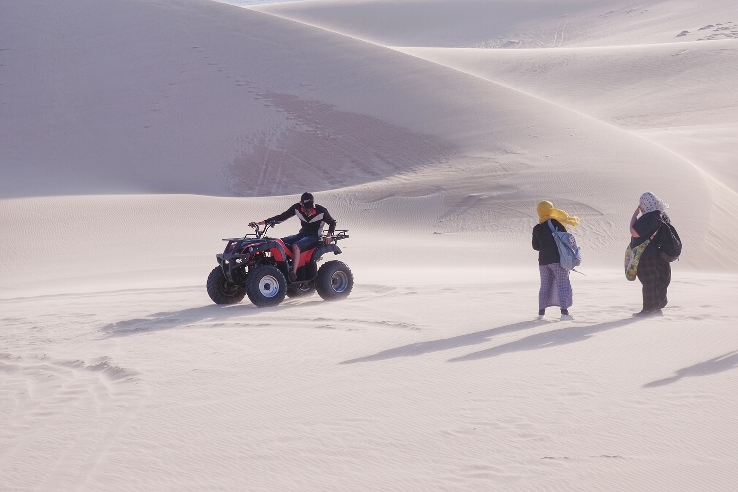 ตอนแรกเข้าไปถามราคาเอทีวี คันเล็กจะนั่งได้สามคนรวมคนขับ ส่วนคันใหญ่สี่คน ราคาค่อนข้างแพงสำหรับเรา เค้าจะให้เวลาประมาณยี่สิบนาทีนะถ้าจำไม่ผิด แล้วเงินดองก็เหลือไม่มากแล้ว ต่อราคาแล้วก็คิดว่ายังแพงอยู่ดี เราเลยตัดสินใจหันหลัง เดินไปก็ได้ว่ะ พอหันหลังเดินแค่นั้นแหละเรียกเรา มิส มิส บอกลดให้อีกไปด้วยกันเลยสี่คนรวมคนขับ ตัดสินใจ เอาดิง้น5555 จะได้ขึ้นไปบนยอดทะเลทรายด้วย อิอิ