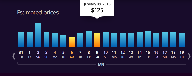 6. ลองใช้เว็ปไซท์นี้ดู http://www.momondo.com ซึ่งมันจะบอกวันที่ราคาตั๋วเครื่องบินขึ้นหรือลง โดยแสดงเป็นกราฟแท่ง ซึ่งจะช่วยให้เราหาวันไปและกลับที่ถูกที่สุดได้