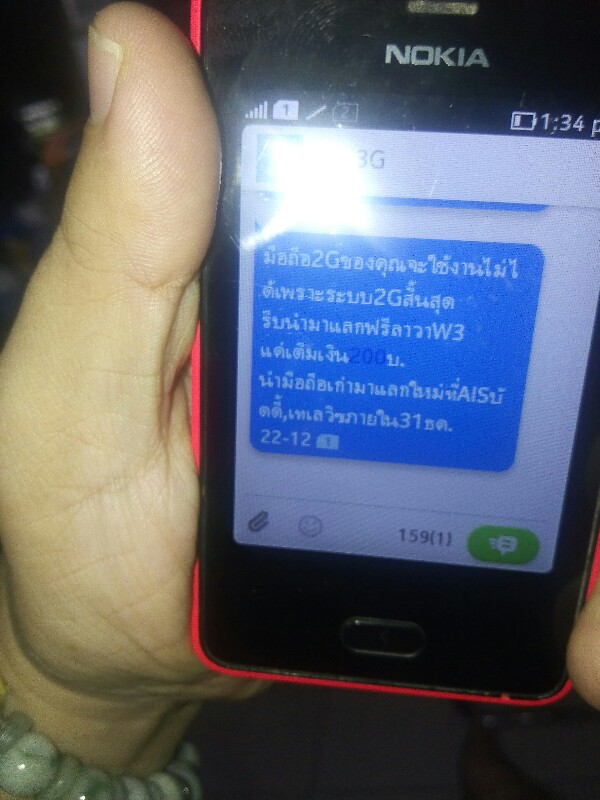ซิม AIS แบบเดิมเงินที่ผมใช้อยู่พอดีไปลงทะเบียนโดย ญาติที่อยู่ต่างจังหวัดีได้รับข้อความนี้