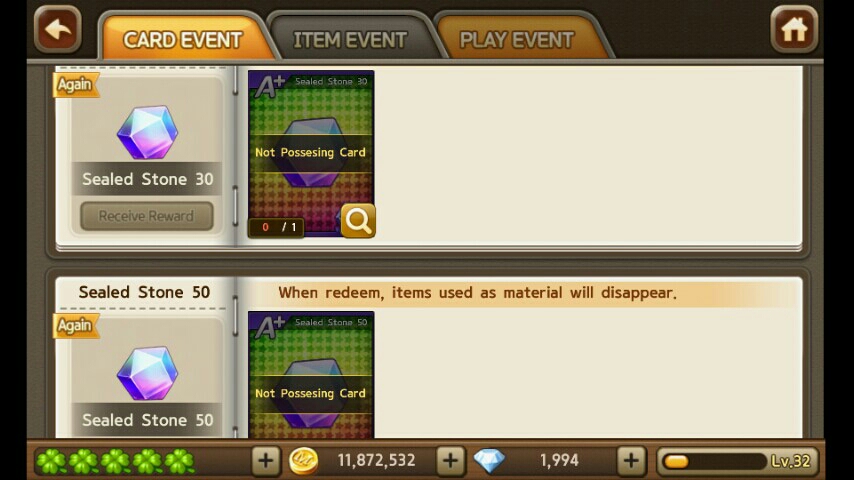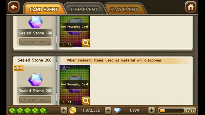 โดยจะสุ่มการ์ดมาให้ 5 ใบ (ตอนนี้ผมยังไม่ลองเปิดฮะ) โดยเมื่อได้การ์ดคริสตัลมาสามารถไปแลกเป็นคริสตัลได้เลย(ไม่ต้องมาเป็นบาศก์คริสตัลแล้วเอามาหมุน เสียเวลาไปกันใหญ่) โดยสามารถแลกได้โดยเข้าไปที่ "อีเว้นท์" ในหน้าเมนู
