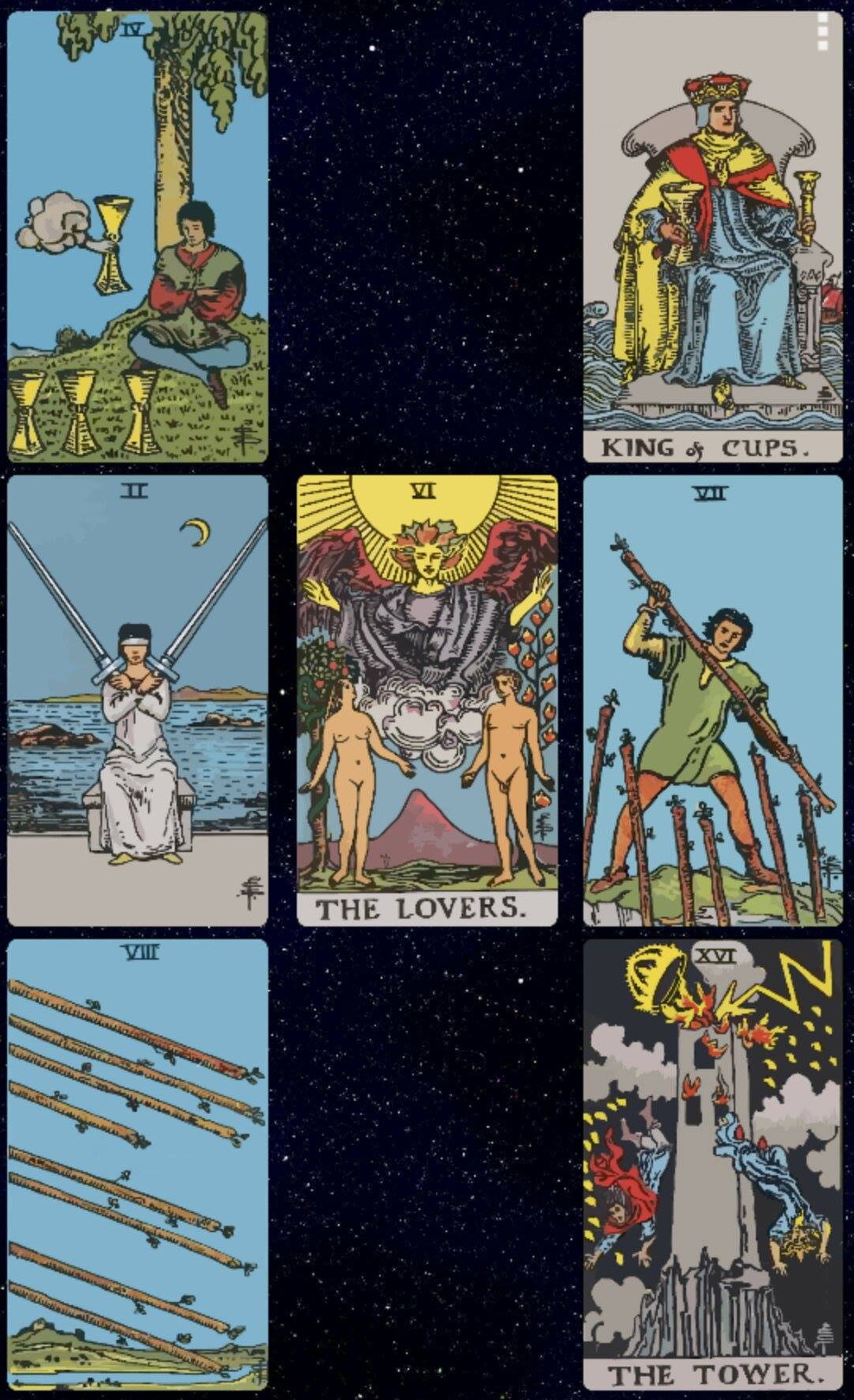 ผมแอบดีใจนะ ที่ The Lovers ออก ถึงส่วนใหญ่จะบอกรักสามเส้าอะไรก็ตาม (แถมเมื่อวานอาจารย์ยังเปิดได้ Devil อีกไม่ต้องถามเลย) แต่แวบแรกที่ผมเห็นผมรู้สึกดี เพราะก่อนหน้านี้ผมเช็คดูไพ่ความสัมพันธ์ทุกสัปดาห์ ได้ไพ่ไม่ค่อยจะสื่อถึงอะไรรักๆเท่าไหร่ มีแค่ช่วงสัปดาห์นึงที่ออกมาเป็น 10 ถ้วย สัปดาห์นั้นก็ดีเลยล่ะครับ