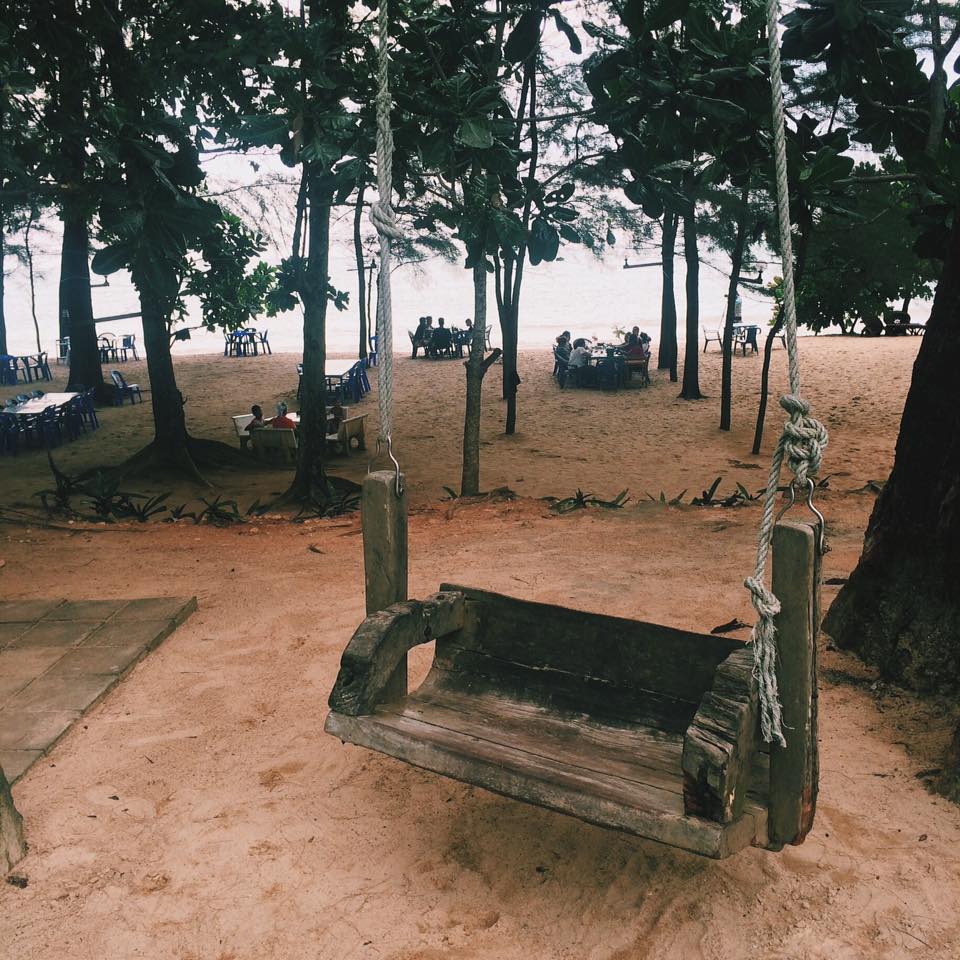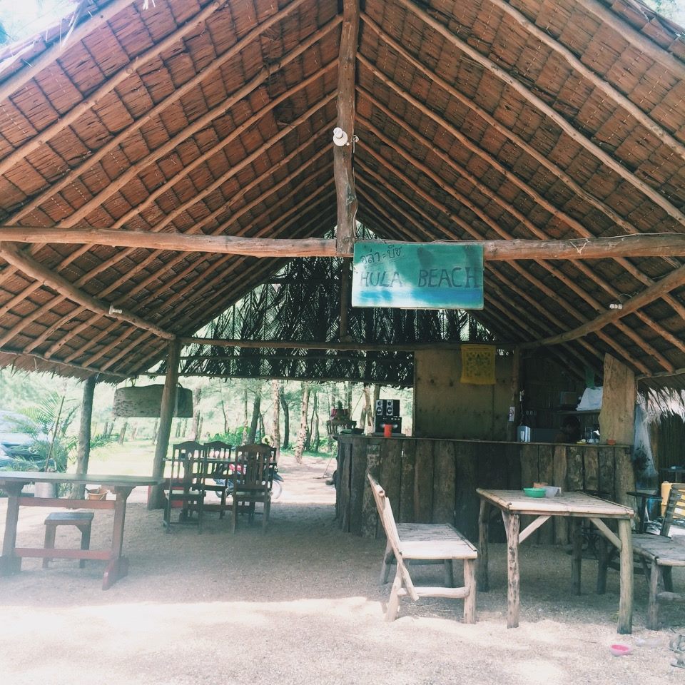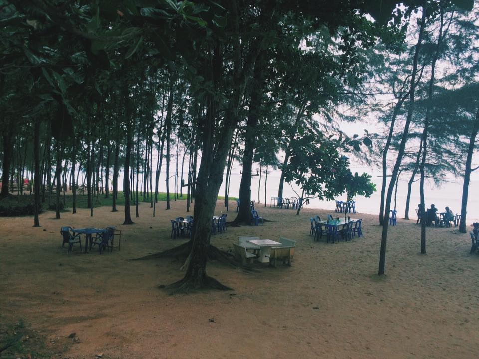 มีที่ให้นั่งพักผ่อนริมชายหาดด้วย ติดกับร้านอาหารและที่พักเลย