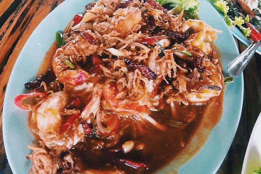 กุ้งผัดฉ่า ดำไปหน่อยแต่อร่อยดี