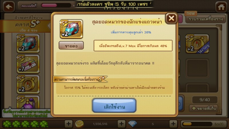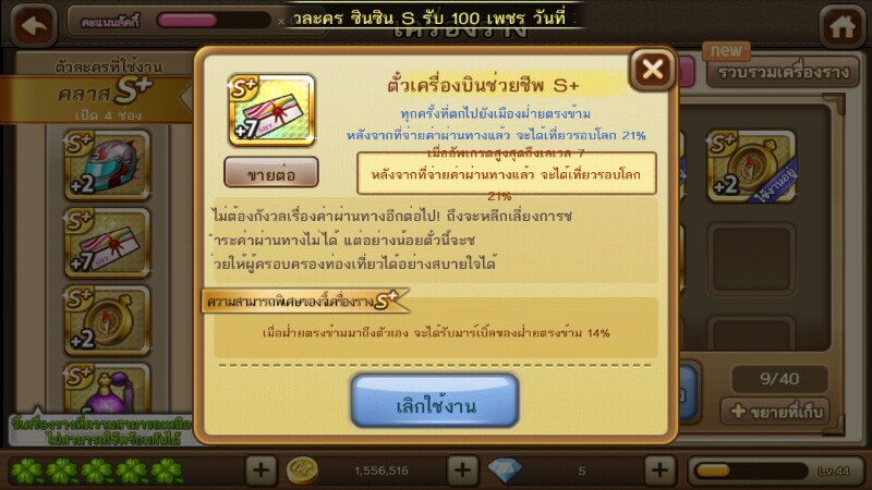 พอดีได้ฟรีมาจากเวลครบ 75 ความสามารถตัดนางฟ้า 40% คือเรายังไม่เคยมีอ๊อฟนี้ จะเอาไปรวมกับหมวกที่อัพเต็ม 7 แล้วก็ไม่ได้ (หรือว่ามันเอาไว้รวมกับจี้ที่ยังไม่เต็ม 7 ได้อย่างเดียวหรอ)