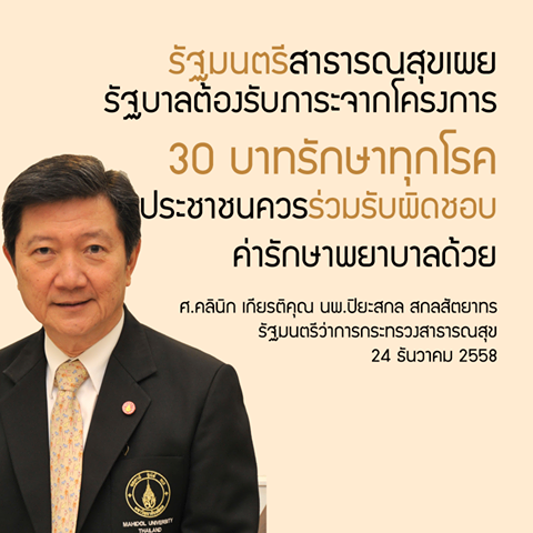 "รัฐมนตรีสาธารณสุขเผยรัฐบาลแบกรับภาระจากโครงการบัตรทอง"