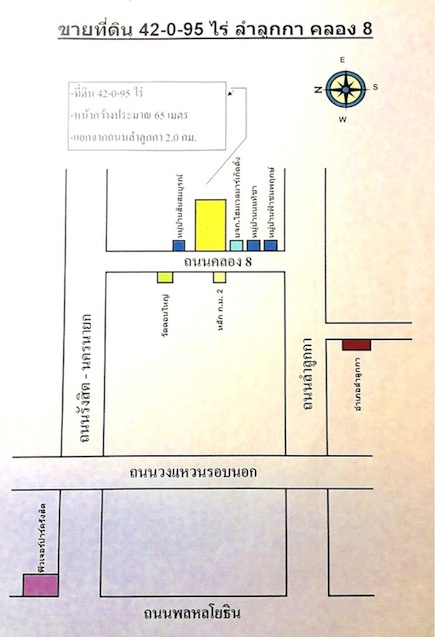ขายที่ดิน42 ไร่ ลำลูกกาคลอง 8 เหมาะทำหมู่บ้านจัดสรร โรงงาน โกดัง คอมเพลกซ์ *เจ้าของขายเอง*