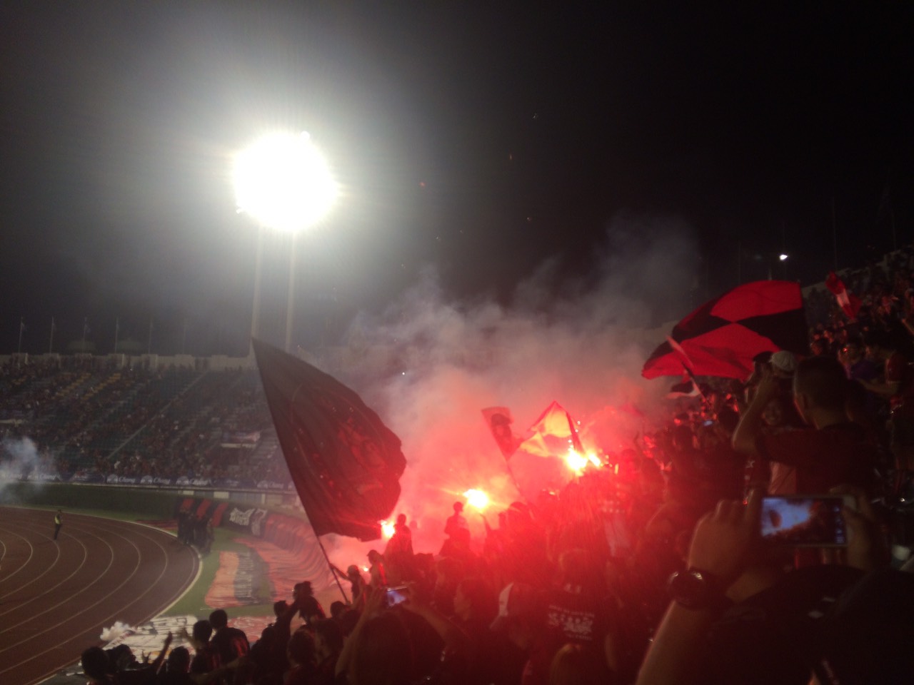 คงอัดอั้นมานานหลังเกมส์ชนะประจวบ วันอาทิตย์ที่ 23 ตุลาคม กองเชียรฝั่ง S เลยจัดพลุฉลอง และแล้วผลกรรมก็ตามมา เค้าบอกว่าพวกเค้ารักสโมสรมากว่าคนอื่น !!!