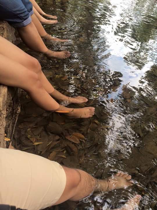 เราก็มาถึงจนได้ ป้าบอก โน่น ๆๆ ไปนั่งให้ปลาตอดขา ไปทำสปาฟรีได้นะ จะกลับละโทรบอกเดี๋ยวป้ามารับ แล้วป้าก็ทิ้งเบอร์ไว้ให้ค่ะ เราก็มานั่งให้ปลาตอดขาเล่น สบายใจ ทำสปาเท้าชิว ๆ ท่ามกลางธรรมชาติ