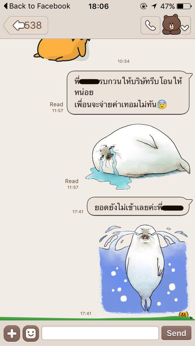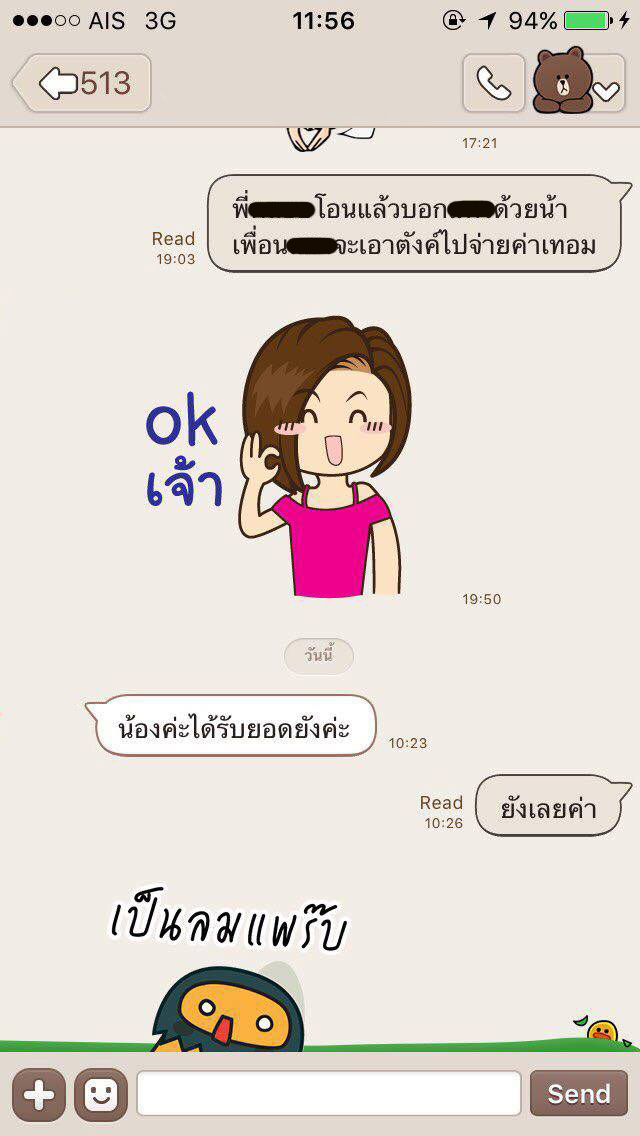 เช้าวันต่อมาเขาก็ทักมาถาม ว่าได้เงินรึยัง
