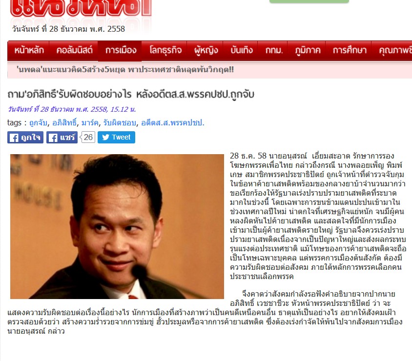 ฮั้วประมูลหรือจากการค้ายาเสพติด ซึ่งต้องเร่งกำจัดให้พ้นไปจากสังคมการเมือง
