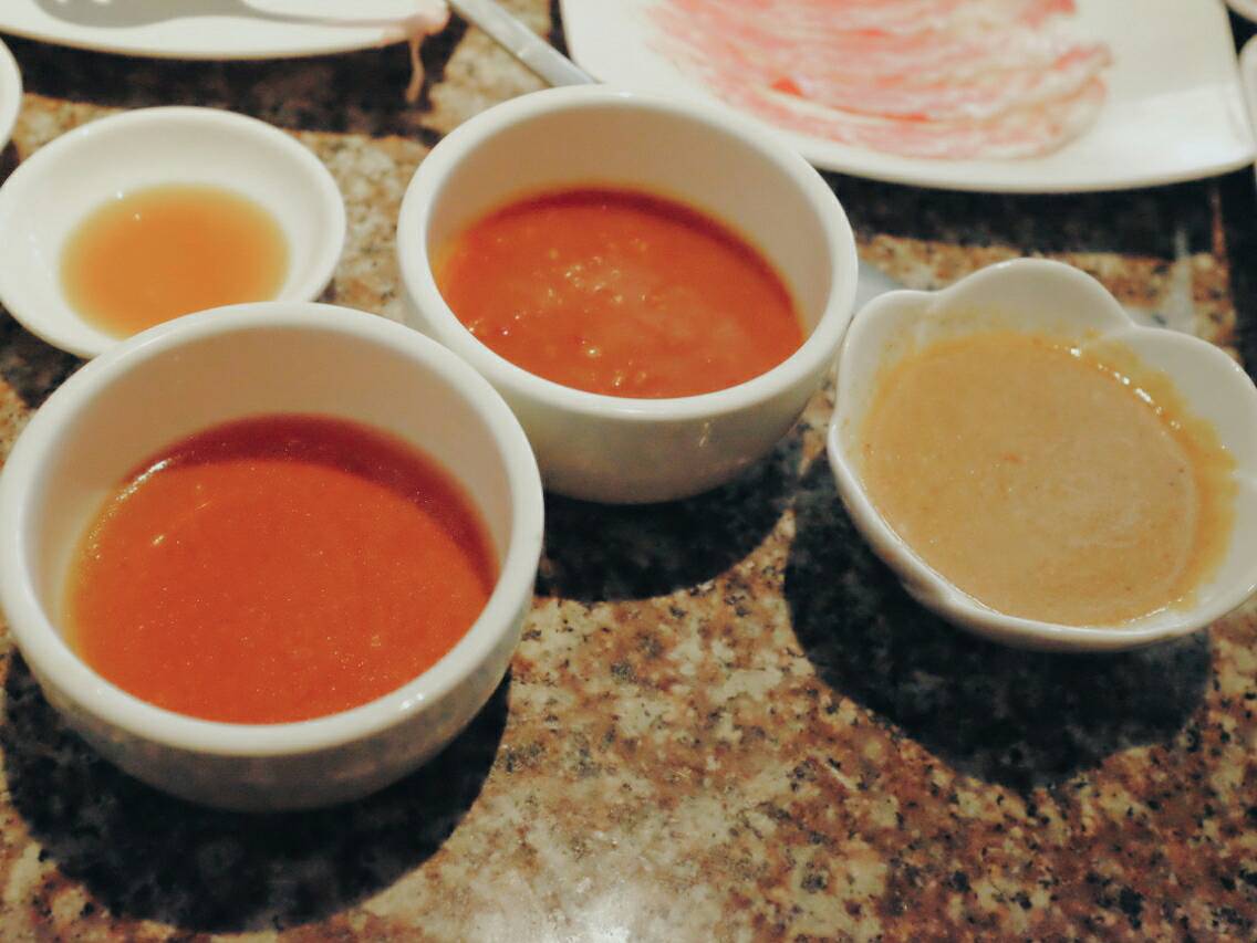 ลืมไม่ได้เลยตัวทีเด็ดคือน้ำจิ้ม มี 3 แบบ คือน้ำจิ้มสุกี้ธรรมดา น้ำจิ้มพอนซึ ละก็น้ำจิ้มงา
