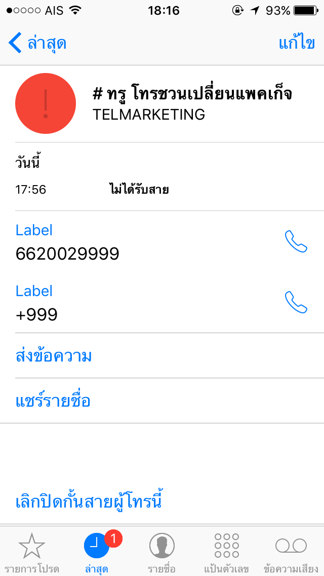 เบอร์นี้ผมเป็น ais ไม่ใช่ทรู และไม่เคยย้ายไปดป็นทรูเลย วันนี้มีโทรมาขายแพคเฉยเลย 555