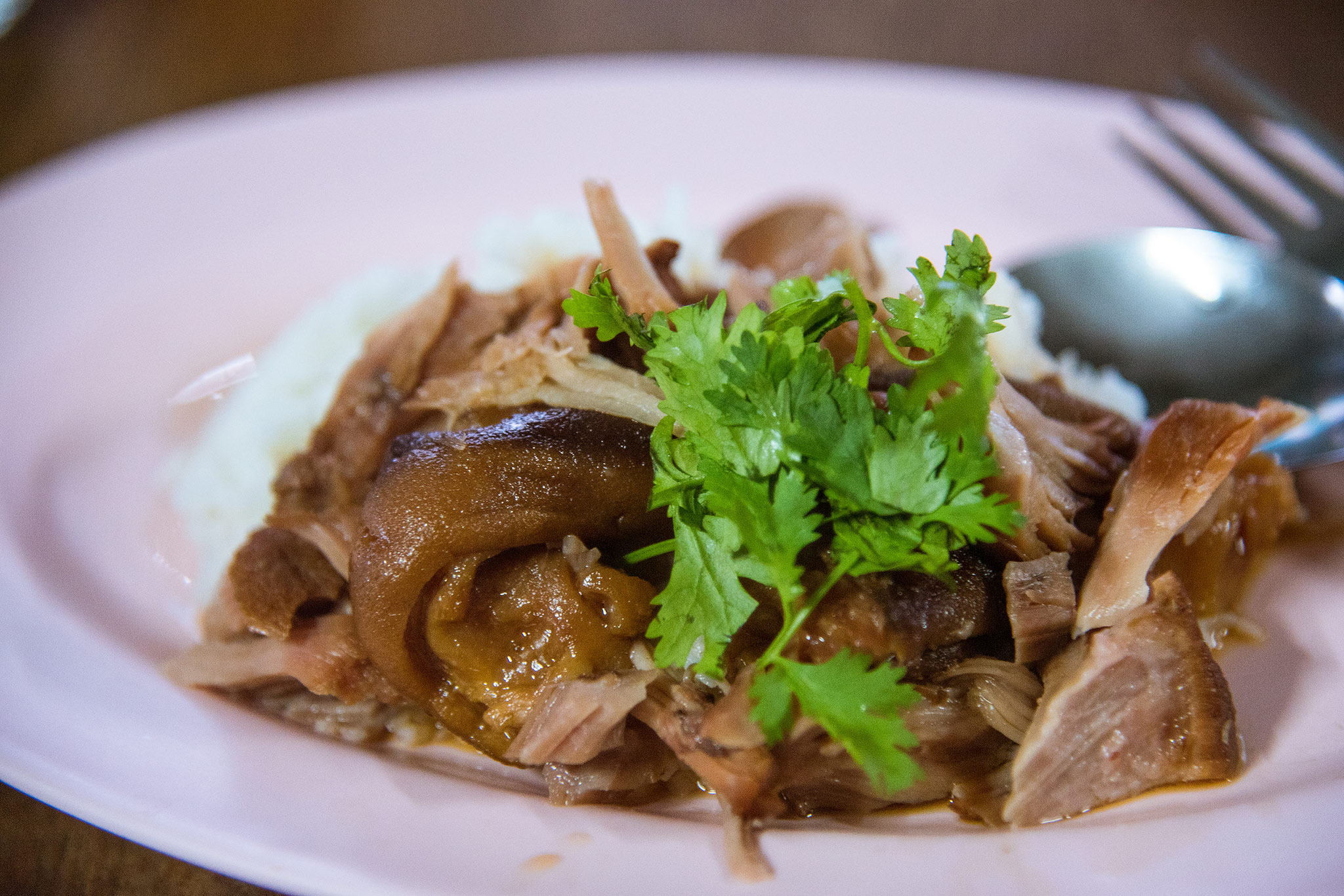 หลังจากที่เราเตรียมพร้อมเรียบร้อยเราออกจากที่พัก 6 โมงเช้าเพื่อไปหาข้าวเช้าและซื้อเสบียงสำหรับข้าวเที่ยงระหว่างที่ขึ้นดอยครับ เราไปกินข้าวขาหมูเสวยที่ร้านพรเพ็ญครับ เห็นว่ามีชื่อเสียง พอทานแล้วก็อร่อยจริงๆ ครับ