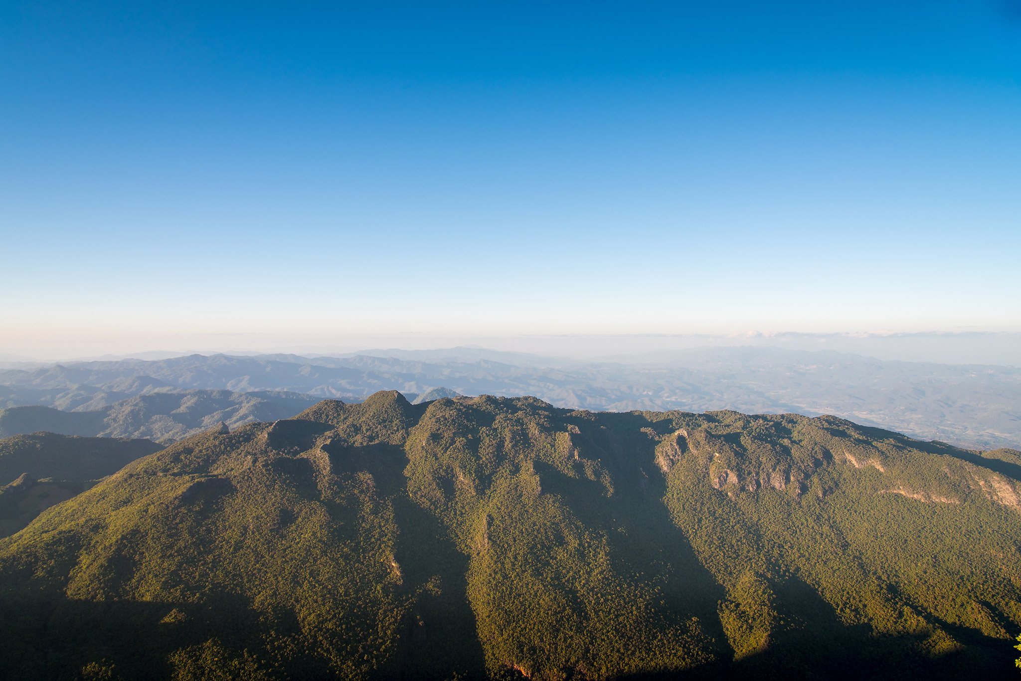 แต่ผมเลือกที่จะเดินไปต่อจนสุดผาเลย เพราะคิดว่าจะเป็นมุมที่พระอาทตย์จะตกที่ยอดของดอยสามพี่น้องพอดี