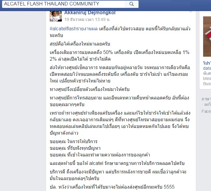 เขาเปลื่ยนให้ฟรีครับ ฝากบริการ Alcatel Flash เขาตอบคำถามรับเรื่องอยู่ตรงนี้
