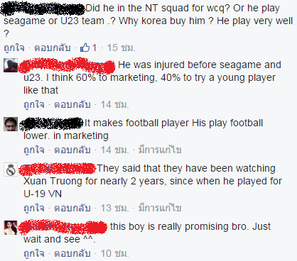 ผมเป็นสมาชิกเพจ Asean Football ทีนี้ VN fan ก็เอาข่าวว่านักเตะ Loung Xong Troung ไปค้าแข้ง K-League มาโพสท์ ผมก็ไปตั้งคำถามตามรูปภาพ โดน U19 VN เข้าไป อีกคนบอก นักเตะคนนี้เป็นตัวความหวัง อีกคนบอก K-League เฝ้าจับตามองตัวนี้มาตั้งสองปีที่แล้ว ผมก็ถามไปว่า เค้าได้เล่น WCQ ไหม ได้เล่น SEA games ไหม ได้เล่นใน U23 คัดเลือกไหม คำตอบคือ เจ็บ ไม่ได้เล่นอะไรที่กล่าวมาเลย ผมเลยสงสัยว่าแล้วเหตุผลอะไรที่ Inchoen จะมาซื้อนักเตะคนนี้ แฟนเวียตบอก คนนี้ U19 VN ... ผมเพลีย