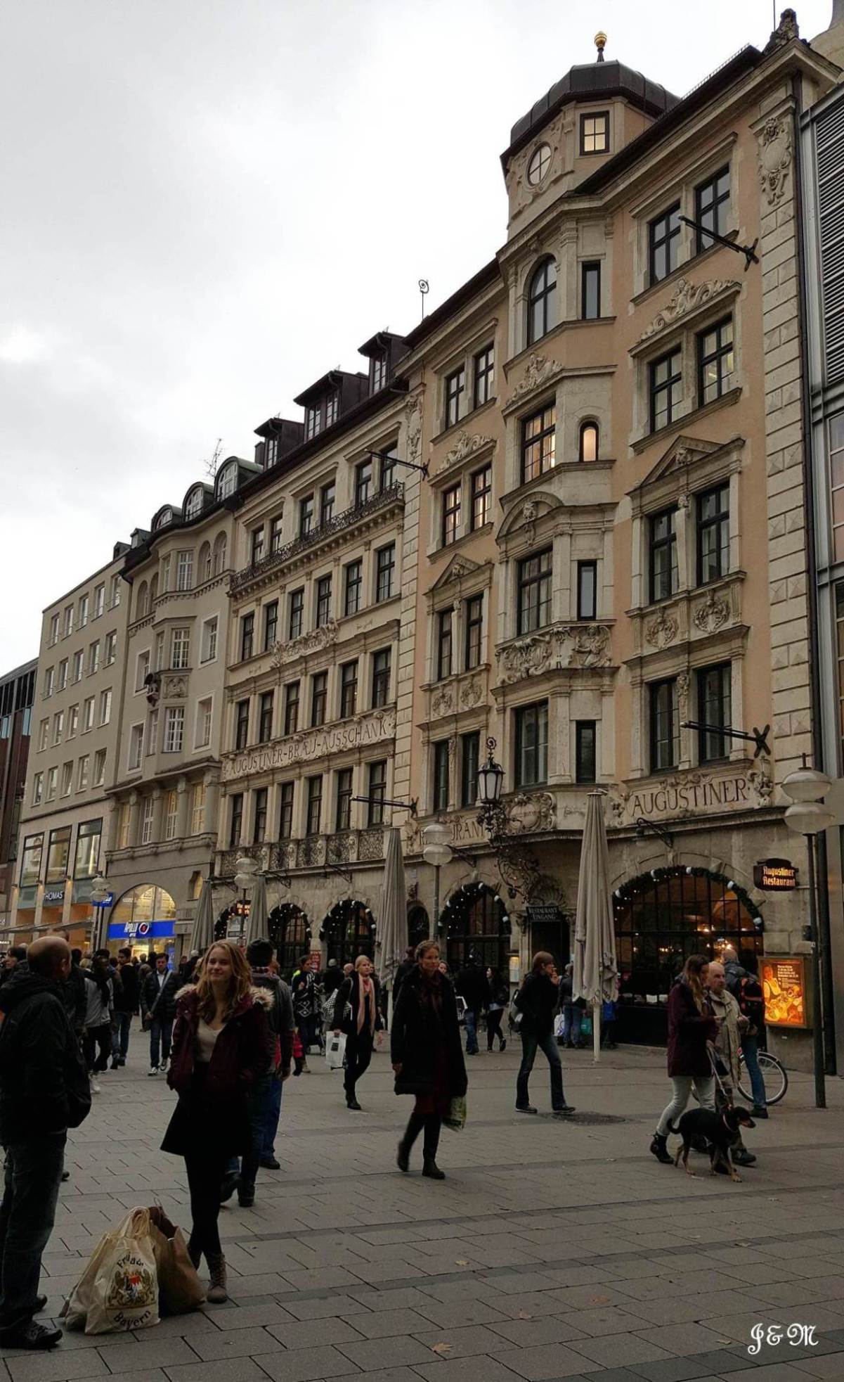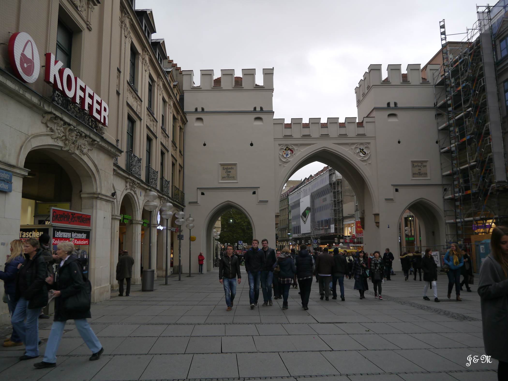 เนื่องจากเราจองห้องที่สามารถนอนได้ 3 คน เลยห้องที่ได้เป็นห้องชั้นบนสุดที่แบ่งเป็นห้องขนาดเล็ก 2 ห้อง แต่ไม่มีประตูปิดนะครับเป็นแค่ผนังกั้นไว้เท่านั้นโดย 1 ห้องสามารถวางเตียงเดี่ยวได้ 2 เตียงพอดีโดยเว้นพื้นที่ระหว่างเตียง และตรงปลายเตียงด้านหน้าประตูไว้วางกระเป๋าได้เล็กน้อย ส่วนอีกห้องเป็นห้องนอนขนาดเล็กมากวางเตียงเดี่ยวได้ 1 เตียงและโต๊ะทานอาหารกับเก้าอี้ 2 ตัว กับที่ว่างวางกระเป๋า เมื่อจัดการกับเรื่องของที่นอน ที่เก็บกระเป๋า และปลดทุกข์กันเรียบร้อยแล้วก็ออกจากโรงแรมเพื่อเดินไปยังจตุรัสมาเรียนพลาทซ์เพื่อให้ทันก่อน 5 โมงเย็น โดยจตุรัสอยู่ห่างออกไปประมาณ 1.7 กิโลเมตรตามที่ Google Map บอกไว้ และยังบอกอีกว่าใช้เวลาในการเดินประมาณ 7 นาที (แหมแสนรู้จริงๆ) แต่พวกเราแน่นอนว่าเพื่อไม่ให้หลุดคอนเซ็ปท์จึง “เดินช้าๆ ฝ่าลมหนาว” ไปเรื่อยๆ ผ่านจัตุรัส Karlsplatz (Stachus) ที่อยู่ตรงทางแยกของถนนสายสำคัญหลายสาย และมีศูนย์การค้า Galeria Kaufnof และร้านทั้งบนดิน ใต้ดินอยู่ในบริเวณนี้อีกเป็นจำนวนมากรวมทั้งยังเรียกได้ว่าเป็นศูนย์กลางขนส่งของมิวนิคอีกด้วย เพราะมีทั้งรถไฟ รถราง รถบัส ผ่านหลายสายเลยเหมือน MBK ที่ประเทศไทย เดินลอดประตูเมืองหรือ Karlstor ที่ในอดีตอันรุ่งเรืองของมิวนิคประตูนี้เคยเป็นส่วนหนึ่งของกำแพงเมืองเก่าทางด้านทิศตะวันตกเพื่อเข้าสู่ถนน Neuhauser ซึ่งน่าจะเป็นถนนคนเดินที่มีความคึกคักมากที่สุดของเมืองมิวนิค เพราะที่นี่เป็นเสมือนศูนย์รวมของนักท่องเที่ยวนานาชาติ รวมทั้งคนที่อยู่อาศัยในมิวนิคเองที่พากันจูงลูก จูงหมามาเดินเล่น นอกจากถนนจะมีความร่มรื่นจากเงาตึกทั้ง 2 ฝั่งที่ช่วยบดบังแสงอาทิตย์แล้ว ยังมีร้านค้าแบรนด์เนม ร้านอาหาร แผงลอย หรือการแสดงข้างถนนอยู่ตลอดเส้นทางจนถึงกระทั่งถึงจัตุรัสมาเรียนพลาทซ์