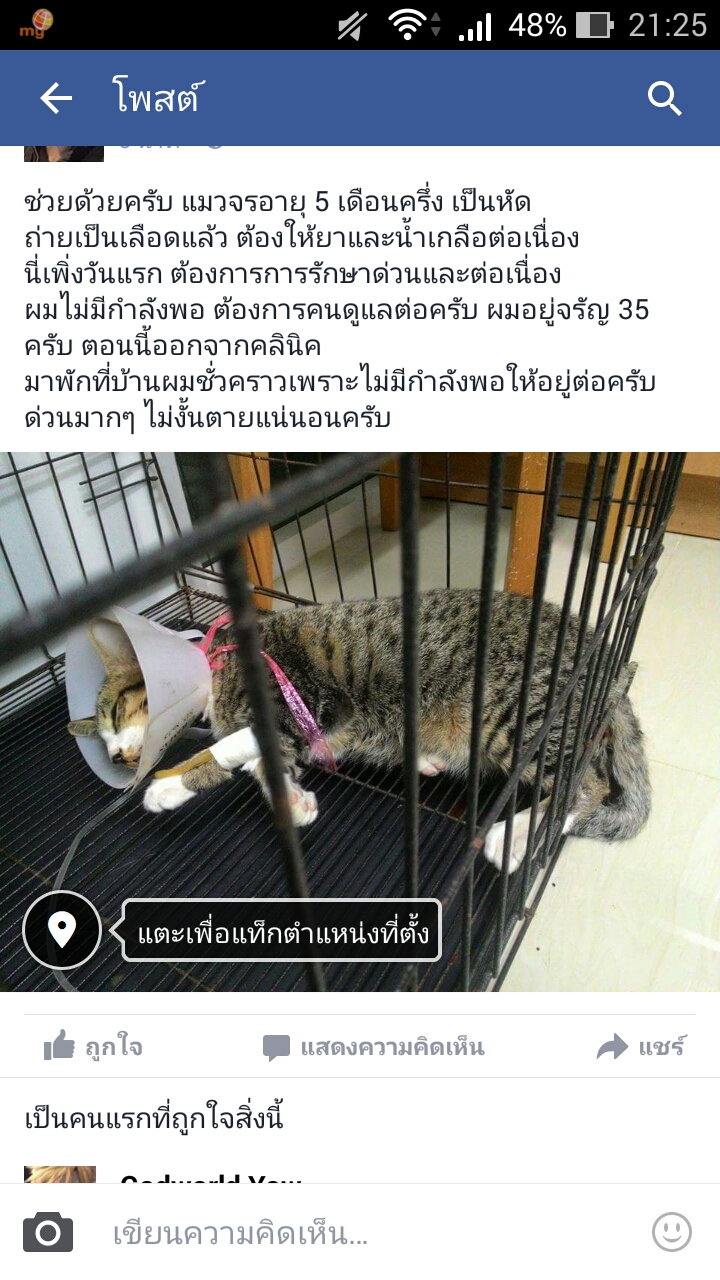 ยินดีไปรับ-ส่ง ทั่ว กทม. และใกล้เคียงครับ ตอนนี้ขอแค่รักษามันก่อนครับ เรื่องบ้านค่อยว่ากัน น่าสงสารมากๆ