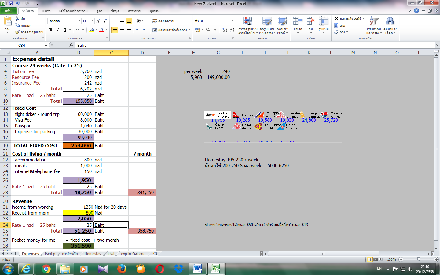 -ค่า homestay ประมาณ 200-250 nzd /week มีอาหาร weekday 2 มื้อ และ weekend 3 มื้อ