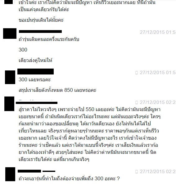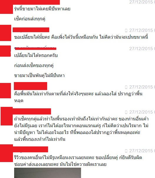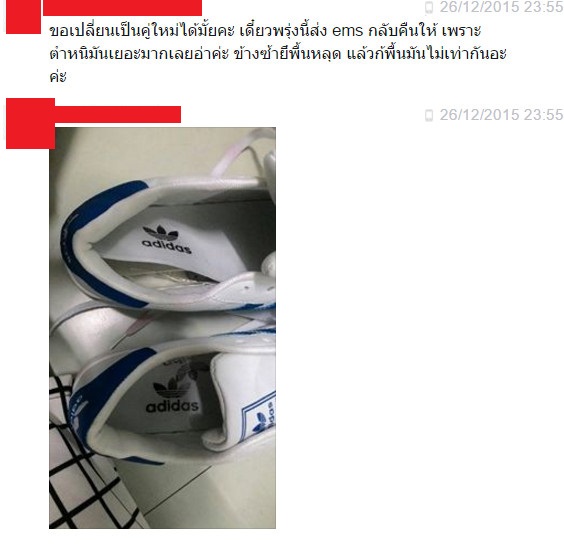 หาว่าเราไปบิดฉีกรองเท้าเค้าเอง ไปทำขาดเอง เราสงสัยว่า เราจะทำแบบนั้นได้ยังไง เสียทั้งเงิน เสียเวลา ส่งไปมา เราแทบไม่ได้อะไรเลย