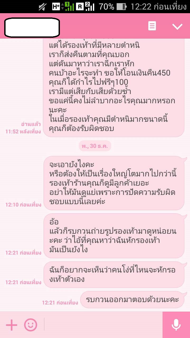 ซื้อรองเท้าแต่ได้คู่ที่มีตำหนิมา เจ้าของร้านไม่รับผิดชอบ และหาว่าเราเป็นคนทำพังเอง