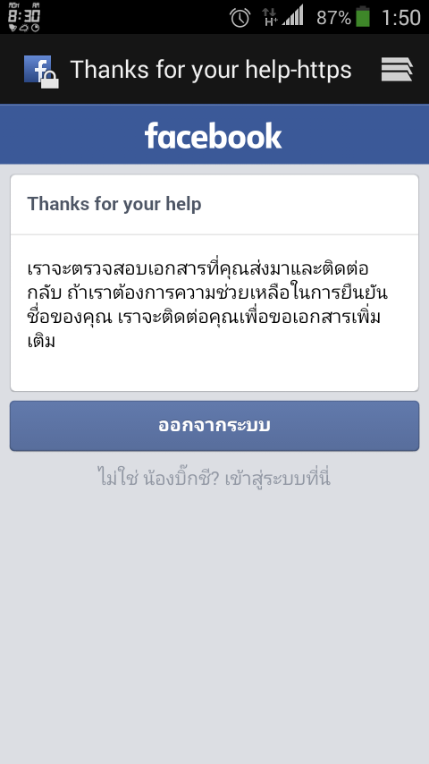 เข้าเฟสบุคไม่ได้ให้ยืนยันใบหน้า