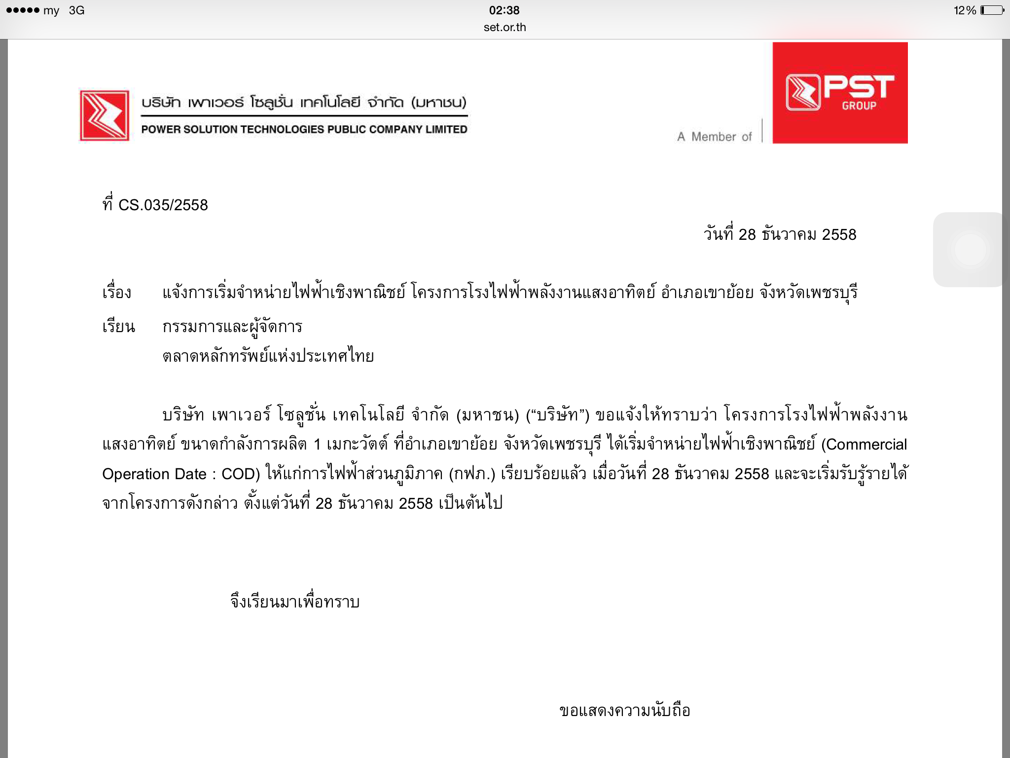 PSTC เตรียมขออนุมัติผู้ถือหุ้นไฟเขียวเพิ่มทุนลุยขยายธุรกิจครั้งใหญ่ หลังผ่านคุณสมบัติโครงการรับซื้อไฟฟ้าราชการและสหกรณ์รวม 15 MW เพาเวอร์ โซลูชั่น เทคโนโลยี หรือ PSTC ผ่านคุณสมบัติโครงการรับซื้อไฟฟ