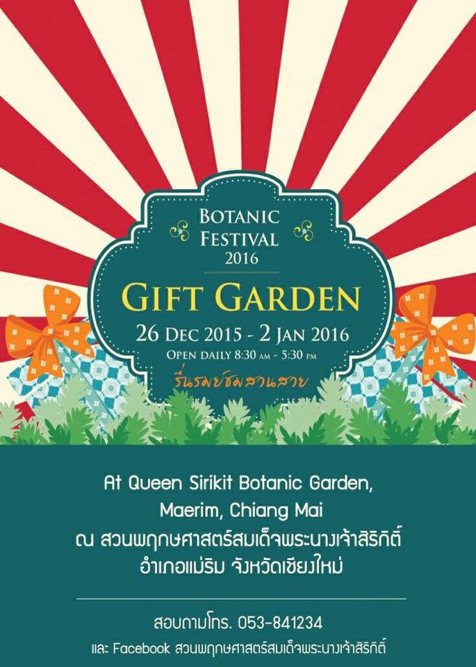 ใครที่เดินทางมาเพื่อตั้งใจมาชม Canopy walkway เส้นทางเดินเหนือเรือนยอดไม้ ที่ยาวที่สุดในประเทศไทย ที่กำลังเป็นกระแสอยู่ตอนนี้ ก็อย่าพลาดชมอีกหลายมุมของสวนพฤกษศาสตร์สมเด็จพระนางเจ้าสิริกิติ์ อ.แม่ริม จ.เชียงใหม่ เพราะที่นี่ยังมีงานประจำปี คืองาน Botanic Festival ปีนี้มาในตีมงาน Gift Garden รื่นรมย์ชมสวนสวย ของขวัญจากสวนมอบให้กับผู้ที่เข้ามาเยี่ยมชม ตั้งแต่วันที่ 26 ธค. 58 - 2 มค. 59 นี้ และจุดไฮไลต์ก็จัดตรงบริเวณกลุ่มอาคารเรือนกระจกเฉลิมพระเกียรติ และจุดชมวิวผานนทรี ห่างจาก Canopy walkway ไปอีก 350 เมตร ภายในสวนฯ ซึ่งในงานจะพบกับบรรยากาศดนตรีในสวนฯ กิจกรรมจากบูธต่าง ๆ การทำการ์ดดอกไม้ การเลือกสินค้าผลิตภัณฑ์เกษตร พรรณไม้ราคาย่อมเยา การจัดตกแต่งจากสวนพฤกษศาสตร์สาขาจากทั่วประเทศ และภายในโรงเรือนกระจกก็มีพรรณไม้ให้ชมอีกเป็นจำนวนมาก เช่น เรือนไม้ทนแล้งที่มีกระบองเพชรหลากสายพันธู์ต้นโต ๆ ให้ถ่ายรูปกันเพลิน เรือนพืชกินแมลง เรือนกล้วยไม้และเฟิน พรรณไม้น้ำ เรือนสมุนไพร อีกจุดที่น่าชมคือพิพิธภัณฑ์ธรรมชาติที่นำเอาเรื่องเราธรรมชาติวิทยา มาจัดแสดงไว้ รวมถึงภาพสามมิติที่รับรองว่าจะไม่ผิดหวัง ปล. น้ำตกแม่สาน้อยที่ไหลผ่านหน้าสวนก็น่านั่งพักรับอากาศที่กำลังเย็นสบายนะครับ