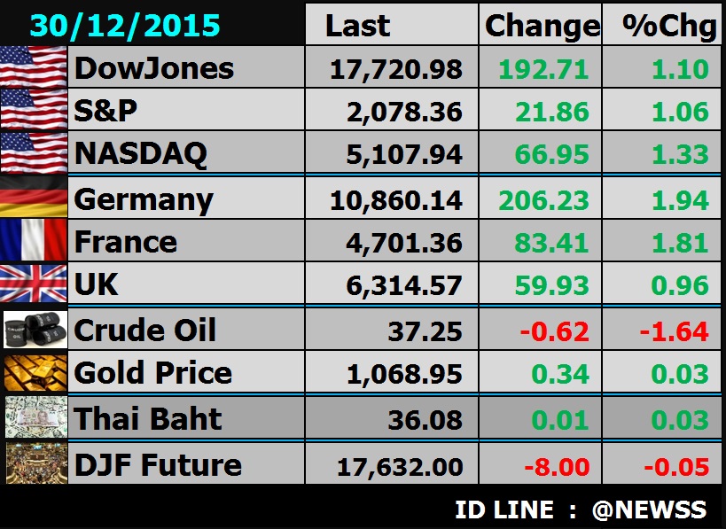 DJIA : พุ่ง 117.65 จุด รับข่าวจีนหนุนเสถียรภาพเงินหยวน EU : หุ้นกลุ่มรถยนต์พุ่ง หนุนตลาดหุ้นยุโรปปิดบวก
